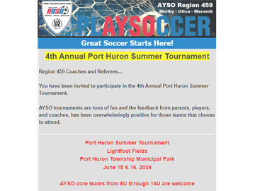 AYSO tournaments are tons of fun and the feedback from parents, players, and coaches, has been overwhelmingly positive for those teams that choose to attend.